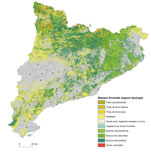 Mapa 7.2. La diversitat forestal. Masses forestals segons tipus de vegetació
